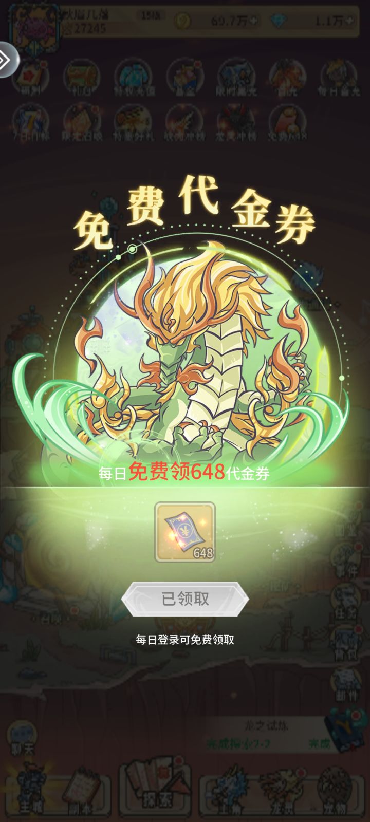 上线就送648代金卷,不错不错。#追妖记