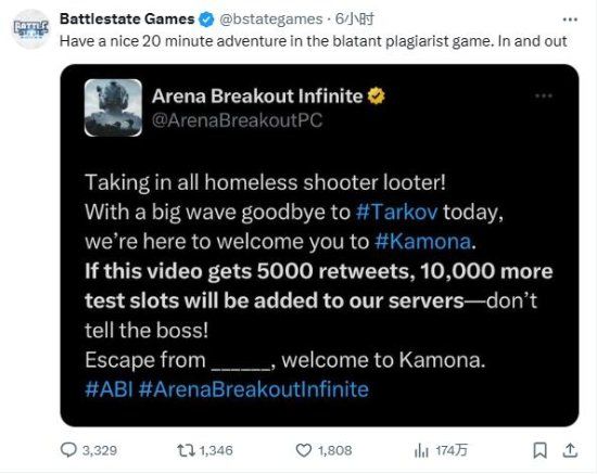 【瓜】塔科夫开发商点名腾讯的《暗区突围》是抄袭游戏