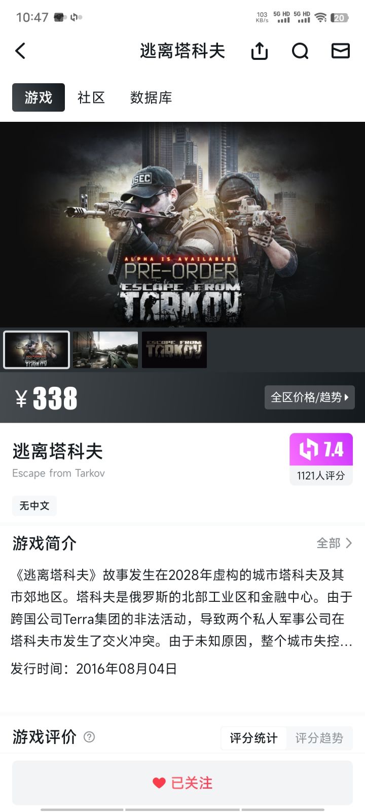 游戏短评-《逃离塔科夫》
