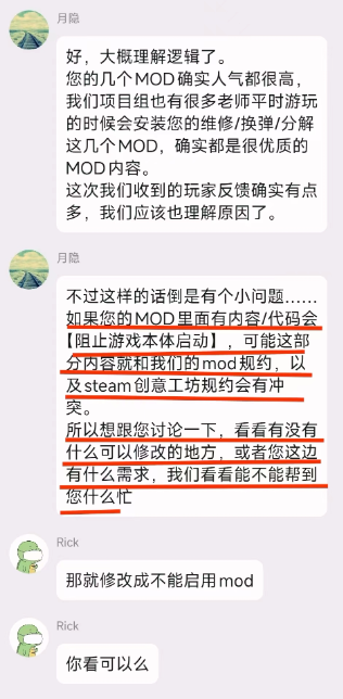 从99%好评到单日好评率暴跌至7%,这款靠“萌系+硬核”圈粉的游戏,短短几天口碑翻车得猝不及防。说到底,还是恶意MOD和官方的摆烂操作太伤人心。 那个带恶意代码的MOD有多离谱?拉黑玩家就强制闪退,哪怕你没启用它,只要电脑里有相关文件就中招。这哪是模组,分明是作者的“私人黑名单武器”,直接剥夺玩家正常玩游戏的权利——这底线破得够彻底。 更气人的是官方的处理:出事先想着和稀泥,跟作者送周边求
