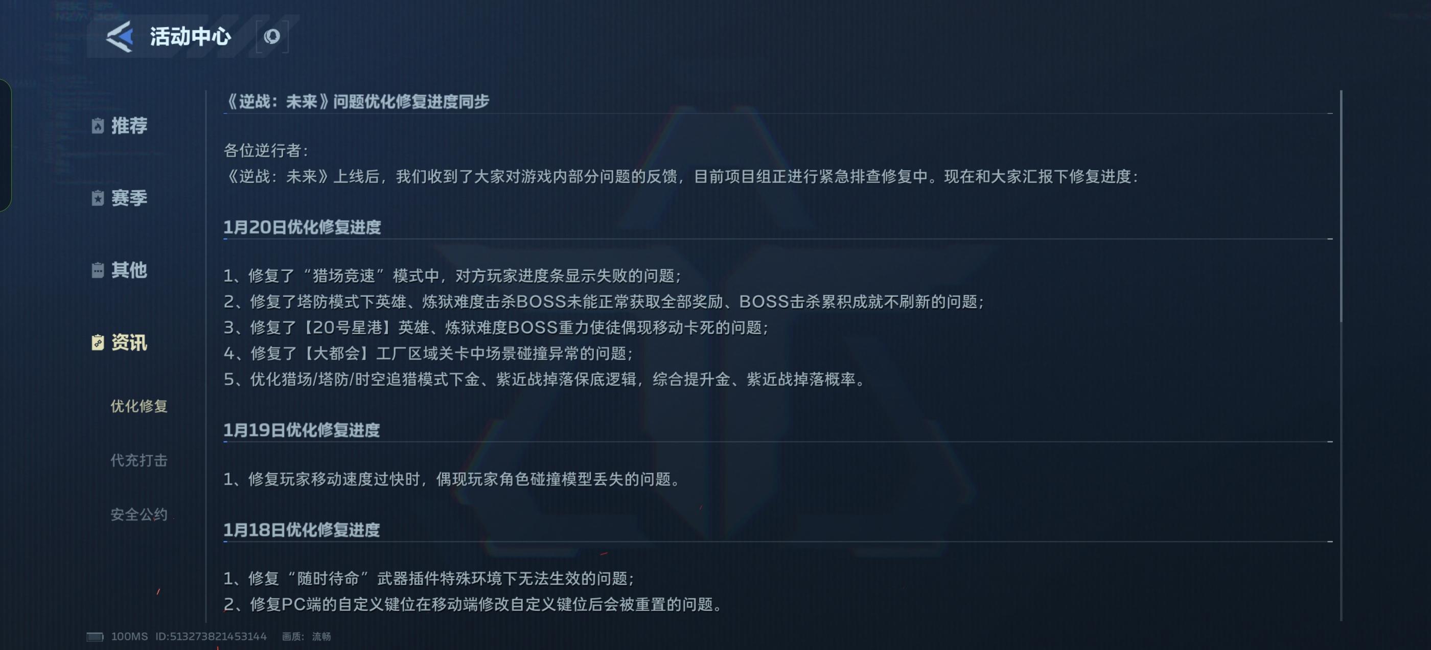 大的来了家人们!就在昨晚逆战未来手游官方开启直播策划面对面进行了回应! 逆战未来公测快一周了,昨晚官方突然开直播,策划面对面回应大家吐槽的福利少、爆率低的问题,结果玩家根本不买账,网上全是吐槽声。 策划说现在游戏里的福利已经给得不少了,后面会尽量再多加一些。 大家反馈的爆率太低的问题也收到了,这两天就会调整提高。还透露了新玩法,躲猫猫模式S1赛季上线,刀战、团竞要等S2,变异模式2026