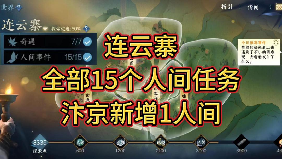 连云寨全部15个人间任务,汴京新增1人间