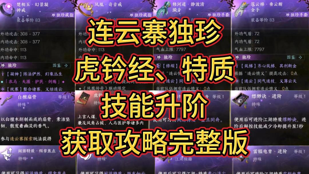 连云寨独珍、虎钤经、特质、技能升阶,获取攻略完整版