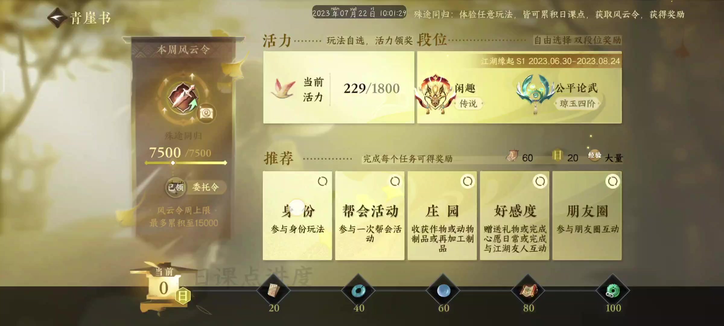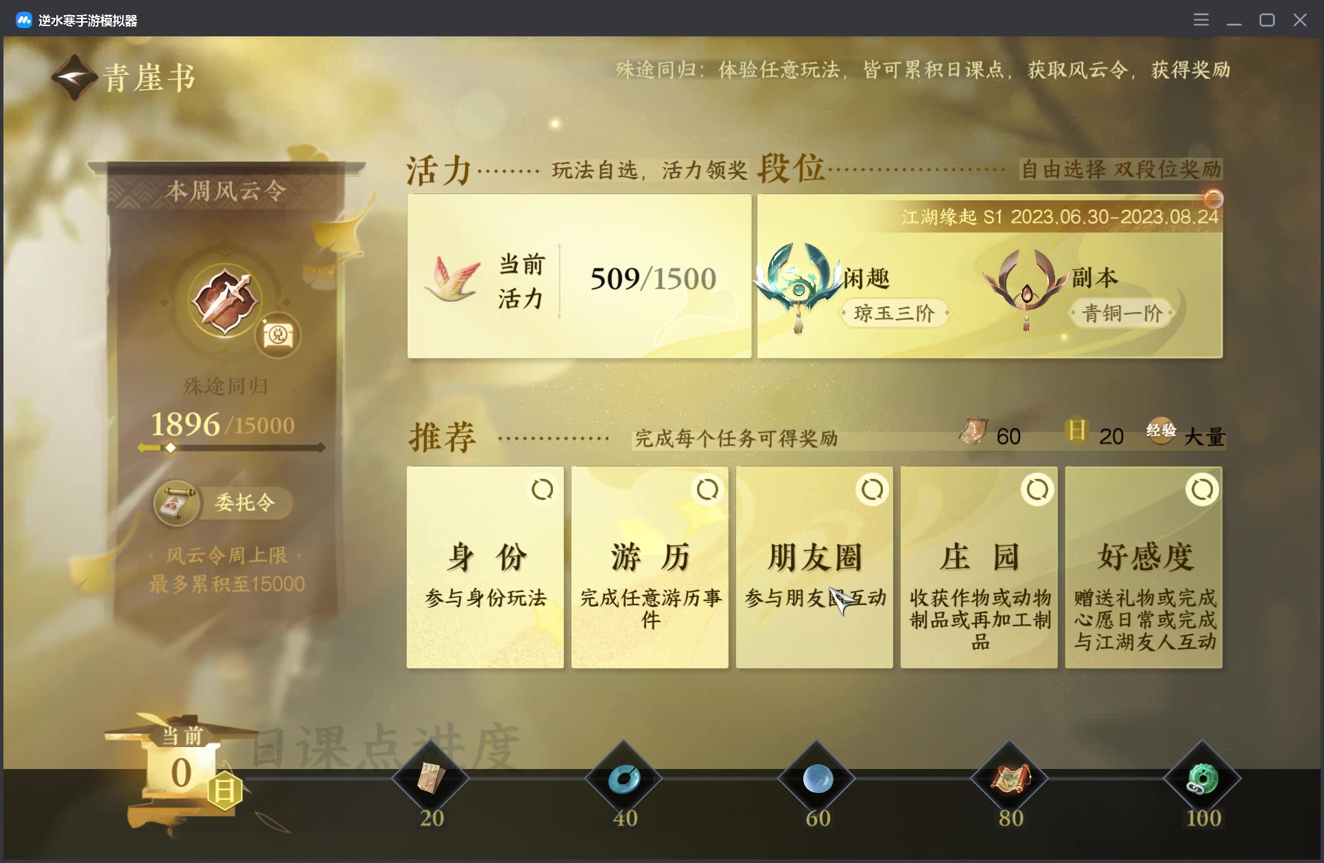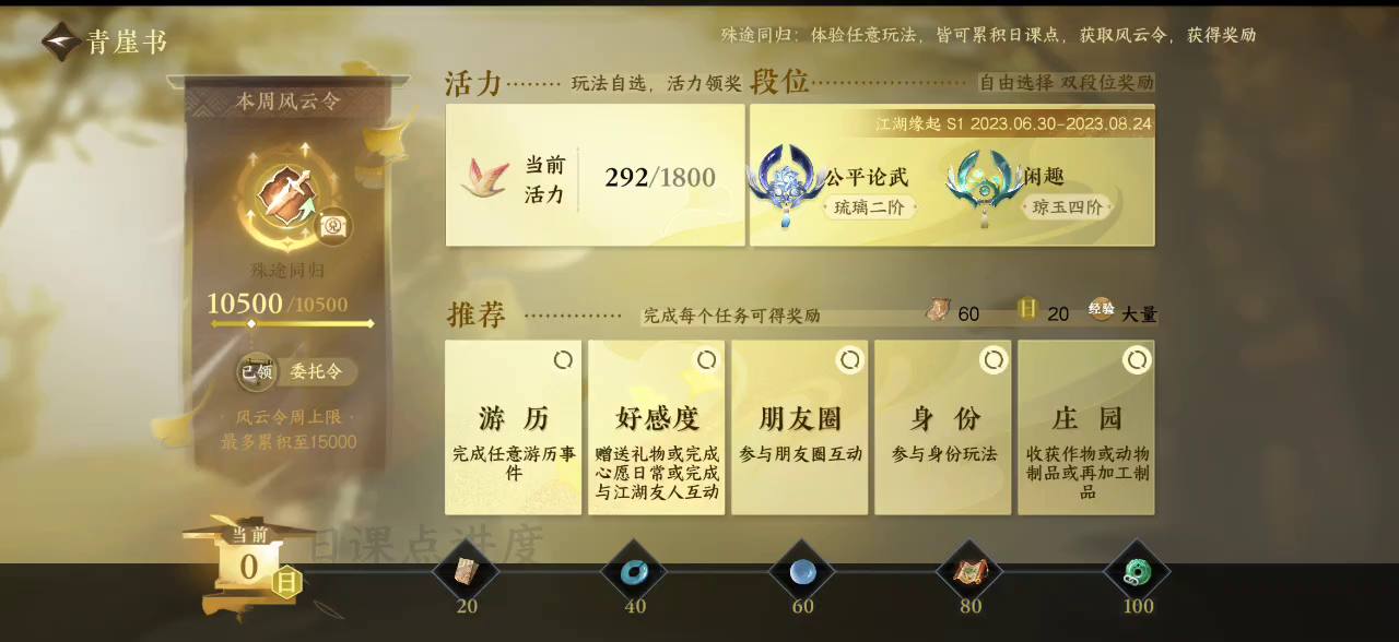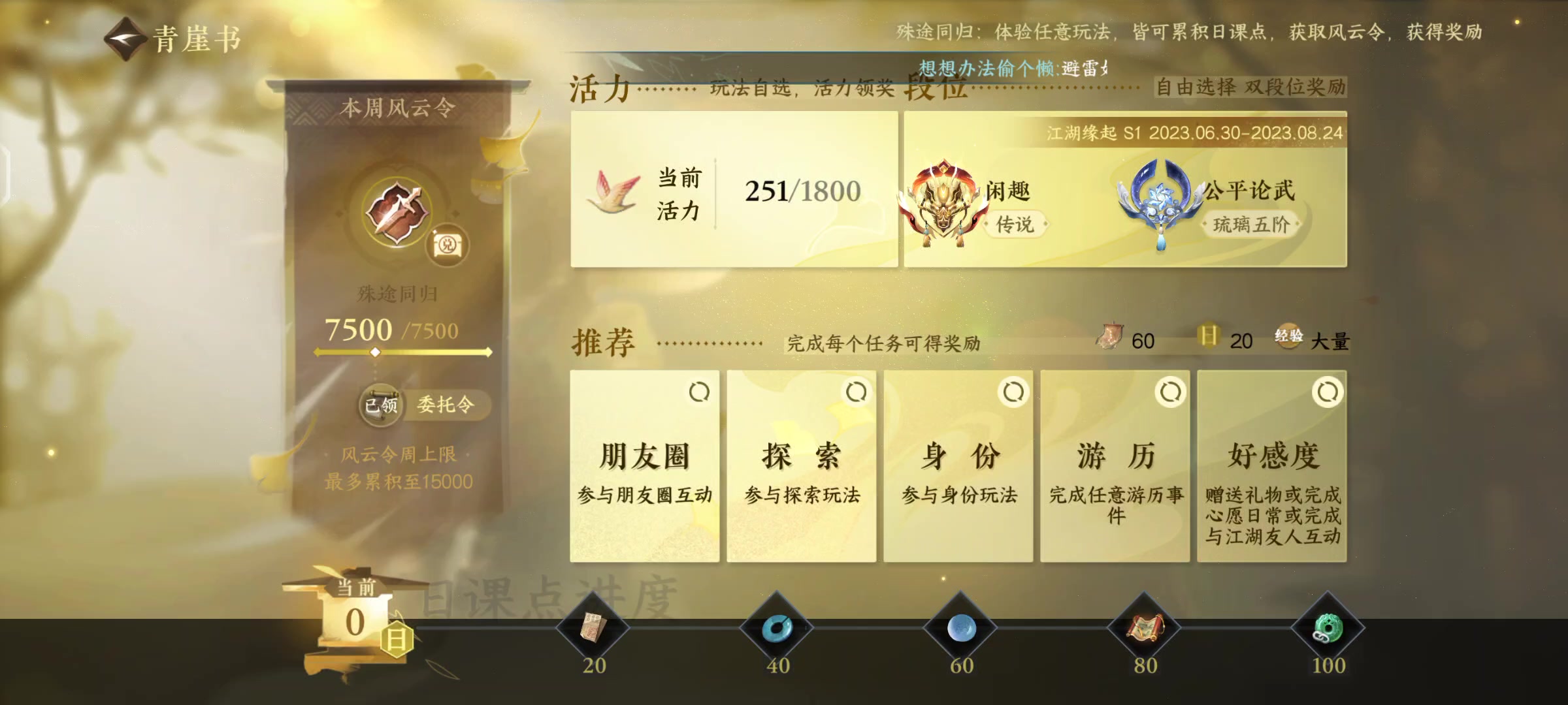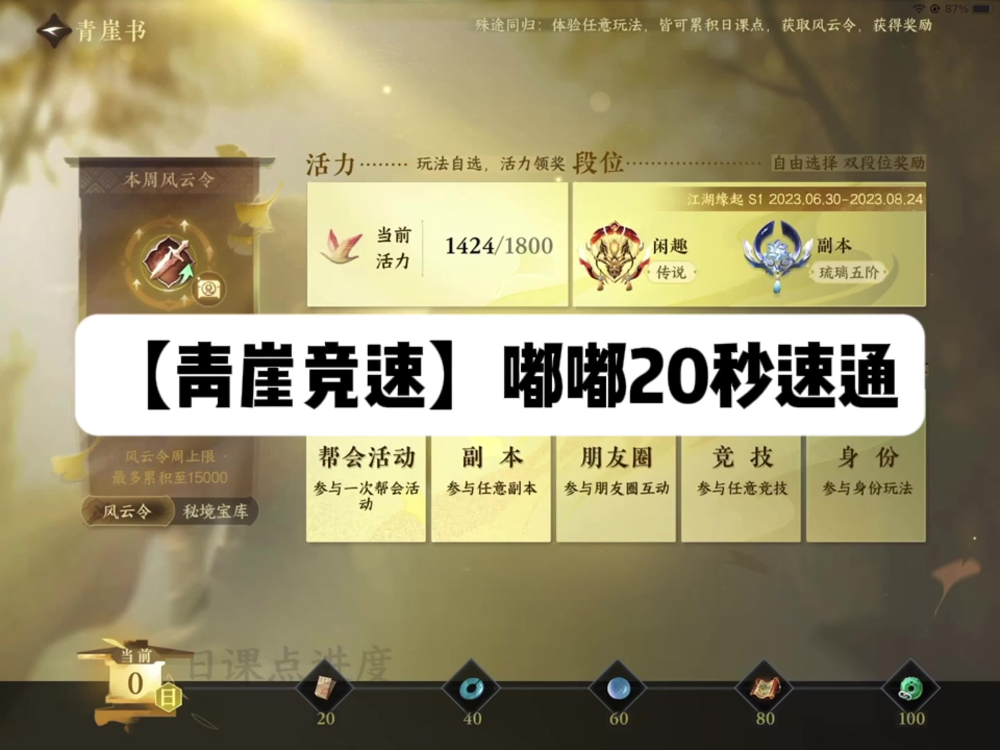 十五秒就能做完日课!每天按这个流程做,真的很舒服,休闲玩家表示这游戏确实不肝,每天必做的事情一分钟就搞定了,其他的找时间慢慢做就行了!#逆水寒青崖竞速