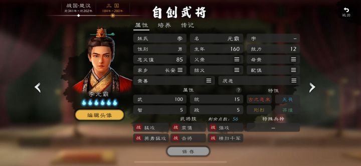 从内测玩到现在一直都觉得难受 为什么购买了自创武将没办法完全自创 尤其是天赋树做的 我自己都不能选择调整怎么想的 你自己看看合理吗 创个李元霸武力一百就登顶 天赋树烂成一坨 创个李世民数值也不够用 天赋树还是一坨 自创武将完全烂透了 你一个单机买断制游戏 花了钱结果捏个造型就完了 数值天赋树都有限制 简直离谱#逐鹿 #逐鹿自建 #逐鹿问题反馈