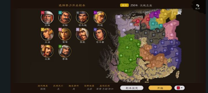 这个剧本还原了八王之乱后的华夏格局,在本剧本中为了照顾手机配置不好的玩家,特意用了原地图。这个剧本中,玩家将扮演刘渊,先让玩家凭借手法吞并石勒,在南下复仇司马越。在这途中,幽州的各大势力,如王浚。需要玩家用外交手段拉拢,你可以直接攻打灭亡。但是在你灭了司马越后,更强大的司马睿会阻止你的统一。那玩家们,你们是否能在重重考验下统一华夏呢?全靠你们的自己的造诣。由于是测试版,我加入了一些三国奖励,接下来
