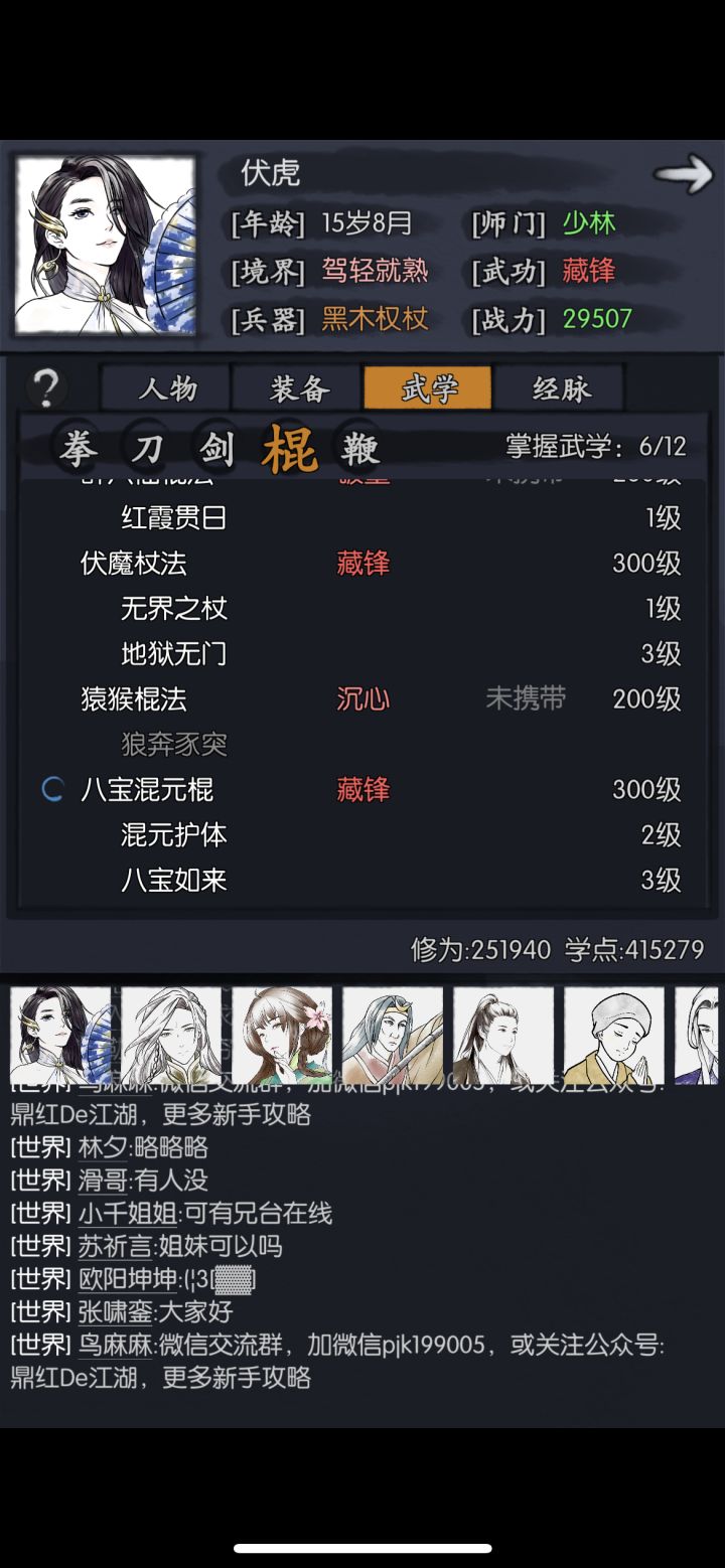 侠客行通关很简单。今天换了个八宝棍试一下居然通了,棍子随便拿的一个黄棍,没强化,全身不是防御装。八宝棍技能只有2和3重。图二阵型,上面角落里丢个主角八宝棍,到后面3关伤害高可能扛不住,换成胖仔就行了,没有其他回蓝侠客那就一定要带仪瑶,不然后面回不上来用不出技能。#攻略#你的江湖#侠客行#通关#新手攻略