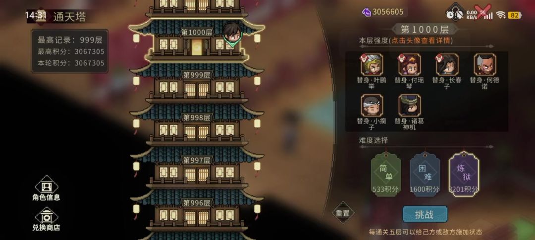 单人通关通天塔1000层纪念