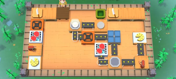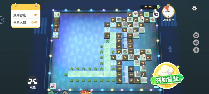 之前在玩的时候就想过普通桌子连在一起之后能不能直接一起用传送带把盘子都收走,但是试过一次,传送带只能收连接着的桌子的盘子,所以就没成功。 这次更新的部分主要是上菜和收盘子,我就想着测试一下怎么运作,逛论坛的时候发现一位小伙伴成功了,但是也遇到了一些问题:同一张大桌子,如果在不同的桌面上连接洗碗机的话只有一边可以运作,有了思路以后我就开始自己搞搞试试。 最开始我也测试了一下同桌面不同桌子连接洗碗机收