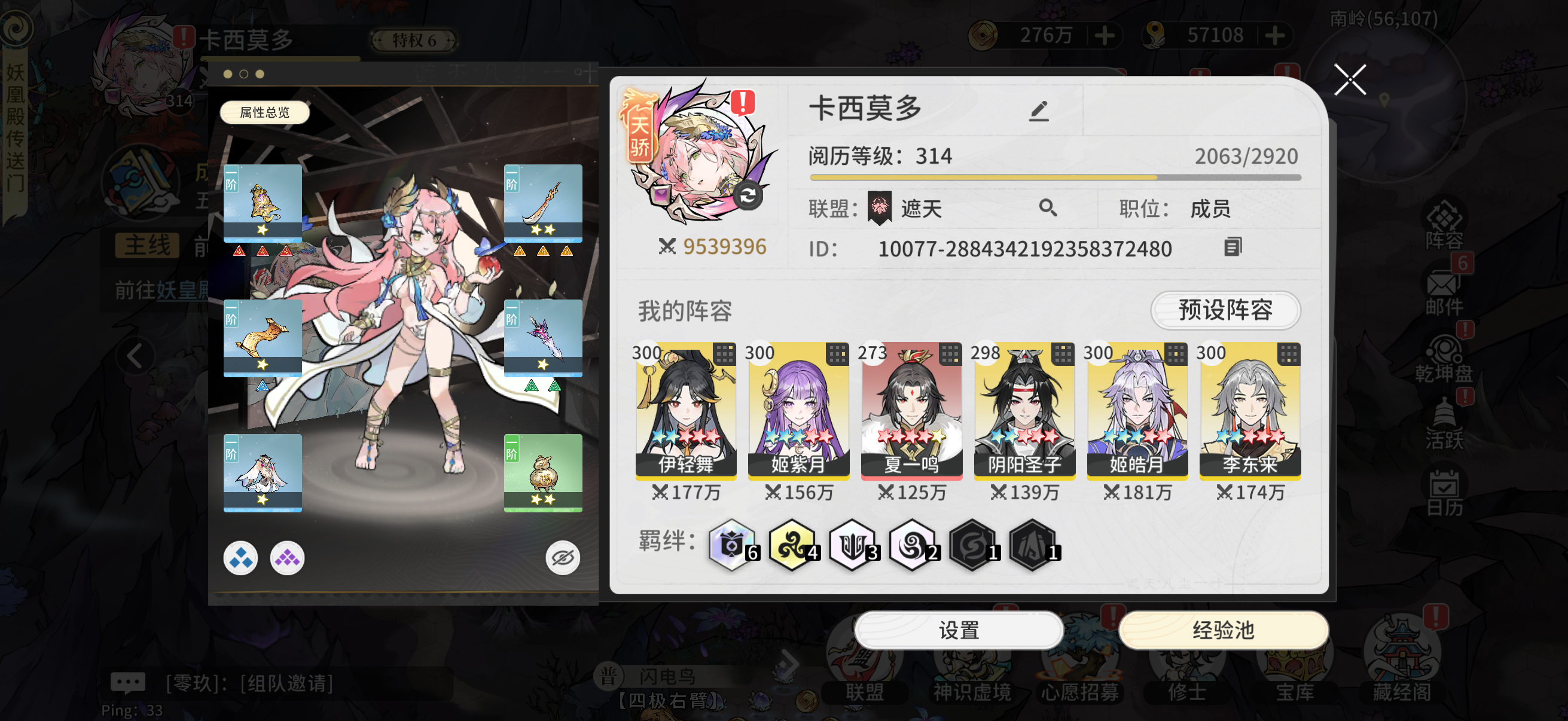 一、热门阵容推荐 天命灼烧流(新手首选) 核心角色:圣体叶凡(主C,灼烧输出)、伊轻舞(T0辅助,全队增益)、庞博(群体灼烧/前排控制)、柳依依(治疗)。 优势:生存能力强,养成成本低,灼烧叠加伤害可越75%战力推图。 搭配要点:激活「天命」「因果」羁绊,优先给叶凡配置【高级法术连击】技能书,提升灼烧触发频率。 世家防御流(PVP向) 核心角色:姬皓月(单体爆发)、姬紫月(辅助)、伊轻舞(增益)、