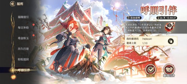 来大佬互填邀请码,有几率拿下天皮邀请码:74d4c641#邀请码#少年西游记2 #送皮肤