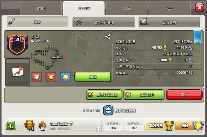 21级冠二十都活跃部落欢迎高本大佬加入部落战常开联赛包安排首领任你遛有意者➕群QQ1002894409 #部落冲突腾讯版 #部落冲突16本