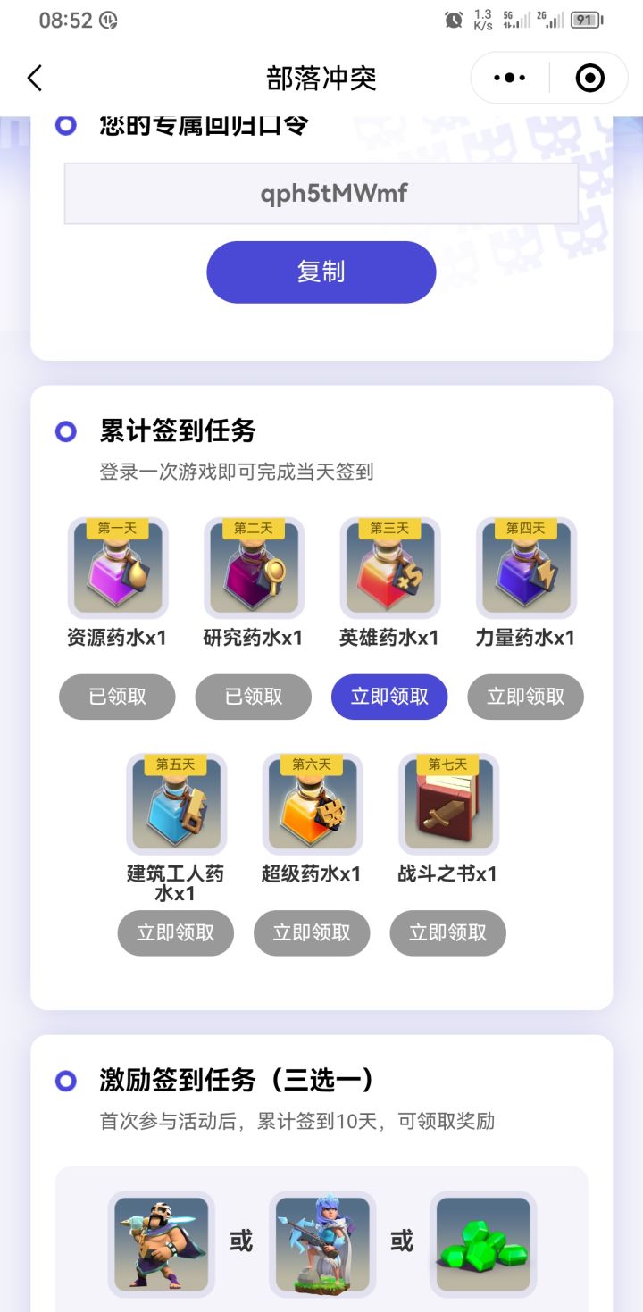 部落冲突活动小程序微信打开登入部落冲突小程序点击微信小程序,输入qph5tMWmf qph5tMWmfqph5tMWmf领取药水,还有英雄皮肤#部落冲突日常#部落冲突16本#部落冲突更新