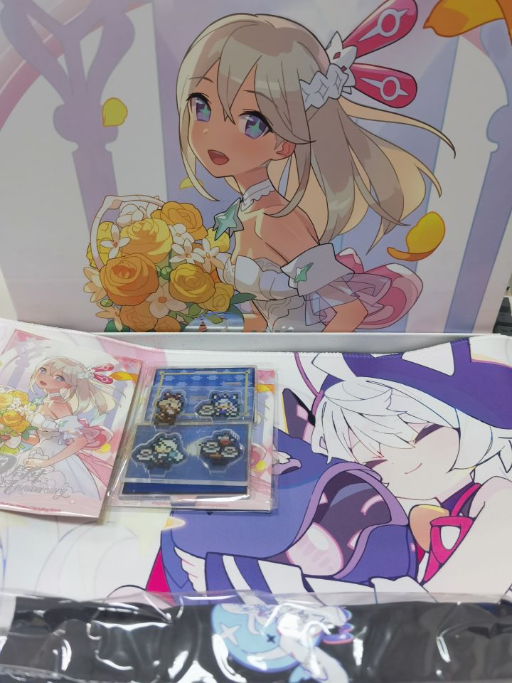 二周年的物料开箱,亚克力立牌,色卡纸,史黛拉雨伞,⭐️猫鼠标垫正好去年抽奖怎么也没抽到,今年抽到啦本来以为周边就一个徽章,没想到竟然是个🎁#都来玩世界弹射物语 #世界弹射物语 另外,198的礼包啥时候上,给我个机会感谢弹宝