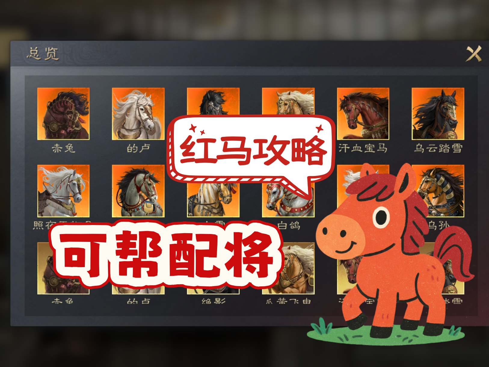 三谋里出红的概率真的很低,很多伙伴即使十个赛季结束都没有见过红马的影子 更别提刚进游戏的萌新了。 那么到底如何提升获取红马的概率呢?不如试试这样做↓ --- 【获取红马的路径是什么?】 三谋中的红马有两种方法可以获得, 第一种是土豪和大佬专属,每周的拍卖上会拍卖红马的产出,大佬花黄金直接竞拍就可以了,价高者得,再就是演武冠军,说实话这都非常难。 因此平民玩家获取红马的唯一途径就是马匹繁育了。 三谋