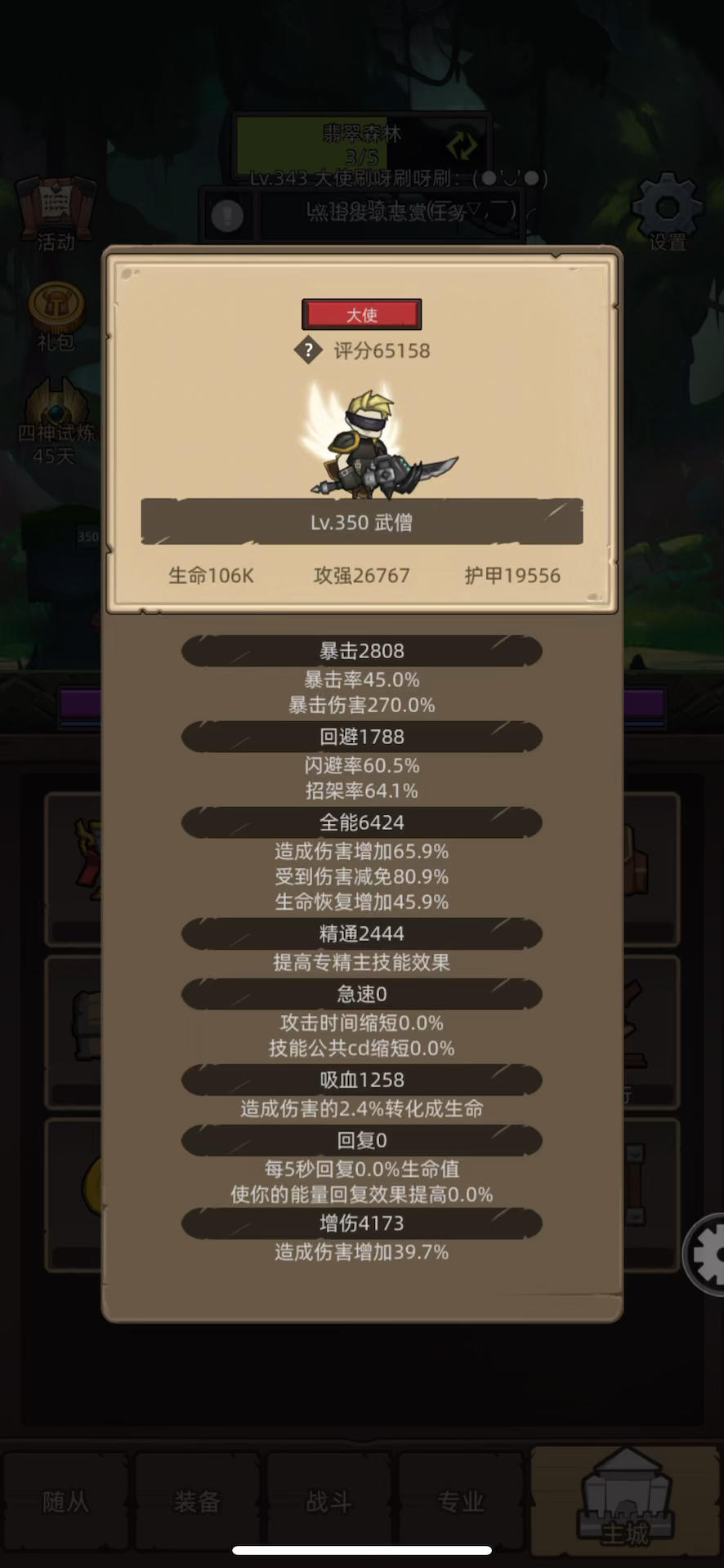 #异世界勇者 #武僧 #酒仙专精 目前大部分玩家对于武僧武道比较头疼吧,这里我(一个爱收菜的小白)想说的是酒仙比较稳,希望挂机的话不妨试试酒仙咯,酒仙AOE伤害稳定。我对于酒仙理解是穿2+2,暴击5+ 5%生命护甲攻强配合残影打输出,被动残影和酒仙蓝武必带。核心输出点就是残影出现复制技能。其他在保证稳定自动史诗3的前提下进行加减,站不住就多点吸血属性或者武器换成格挡,项链换成释放技能百分比回