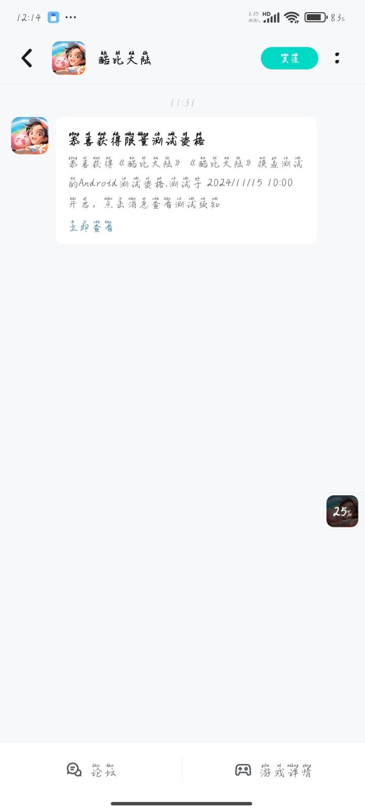 亲爱的引路人:非常荣幸能邀请到您参加《酷比大陆》的摸鱼测试!服务器将于11月15日开启,一个未经探索的奇幻世界正期待着您,开启一段超高自由度的探索、挑战与成长之旅!【测试信息】:1. 测试开始时间:2024年11月15日10:002. 测试类型:本次为限量删档测试,游戏内不开启充值功能;3. 测试平台:仅Android设备可参与,最低机型配置如下:Android - CPU Qualc
