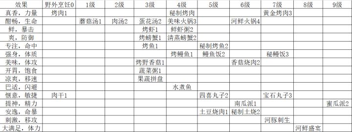 之前随手做的,烹饪没满的萌新可以参考,厨艺套餐没几个,就没做#重建家园萌新攻略
