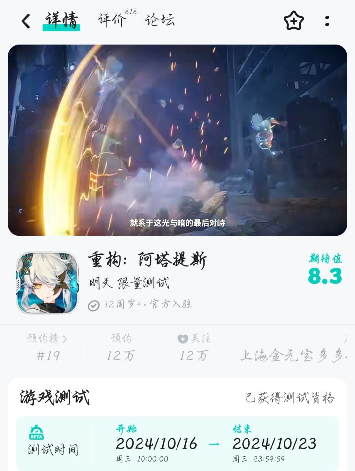 忘了什么时候预约的了,期待明天测试。#重构阿塔提斯 #重构阿塔提斯归来 #重构阿塔提斯归