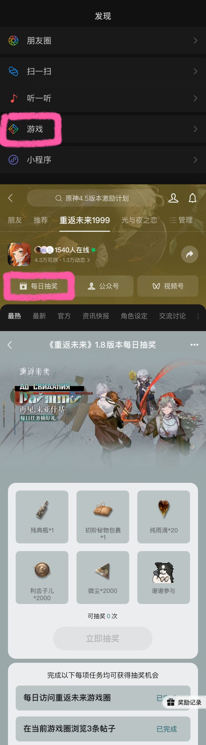 P1-3抖音P4 TapTap P5 小红书P6 微信有新的会编辑更新#重返未来再见来亚什基征集活动