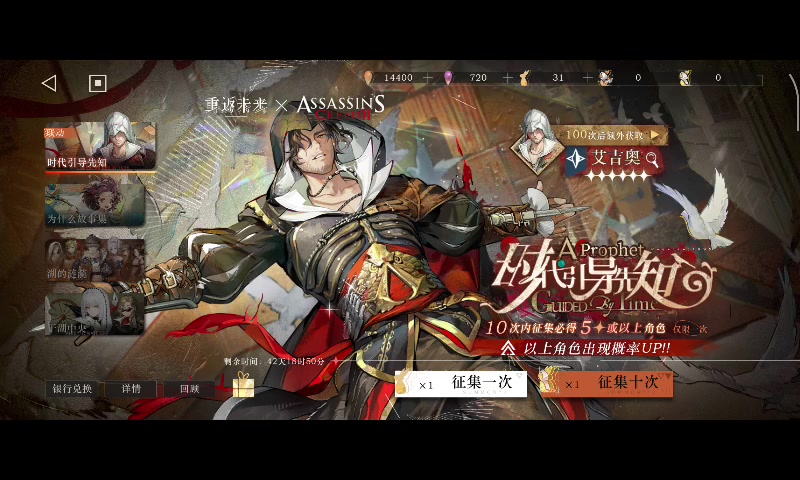 新角色,上线就中,40抽双金[表情_斜眼笑][表情_斜眼笑][表情_斜眼笑] #重返未来1999 #艾吉奥 #重返未来刺客信条联动