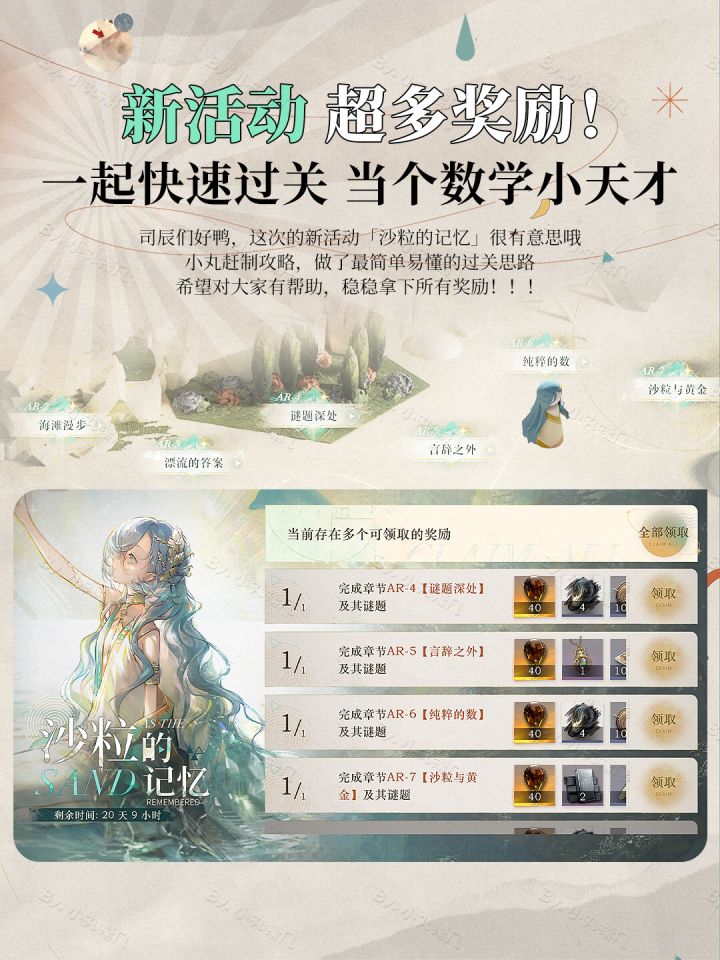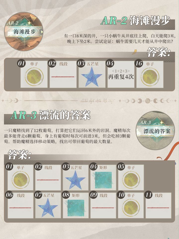 重返未来1999『沙粒的记忆』全关卡答案将将~这里是你们的小丸!重返未来:1999终于来到1.4版本啦!新活动很有意思诶~小丸赶紧赶制了新活动【沙粒的记忆】全部关卡的答案,司辰们赶紧来抄作业,搬空奖励,一起当个数学小天才!—————— ฅ՞• •՞ฅ ———————🔘制作不易,严禁任何商业性转载及搬运,转载需标注攻略出处喔🔘制作难免会有错漏,希望大家多多提意见,我会及时修正(贼听劝🔘