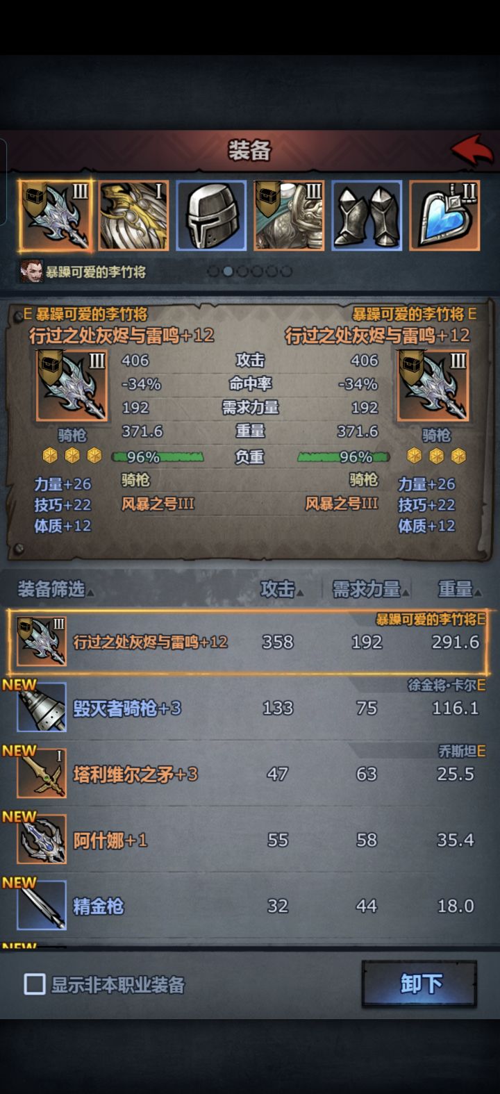 [表情_思考]硬创创死泰勒斯 核心就四个人 重骑 飞鹰诗人 激励工具人 狂热工具人 重骑带圣物强化毁灭冲锋 然后牛头是激励5 作用是+五个能量 相当于给毁灭冲锋增伤300% 随便一个诗人飞鹰5 增伤40% 核心作用是一回合动两次 冲完一次还可以回去吃buff 没有狂热5 找了个狂热1凑活了一下 就差40%伤害 目前伤害已经破3W 视频是不吃狂热的 伤害2.4W 封面是吃了狂热1的 3.1W 重