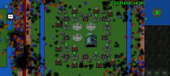 不知道为啥叫全面战争王者不叫铁锈战争,应该是1.13版本。这个图我是囤了点蛋然后打一大波核爆结束的,打了一个半小时,觉得挺有意思就发下。打法可能很多种,但主要是前期中期防守建阵。封面初始配置,后面那张我胜利结算的布阵。合理利用暂停然后进行交互,这真的很重要!很重要!很重要!重要的事情说三遍。开局升全部资源地,中途升完了继续升,优先升到最高。一对一在里面建一圈防空炮台(一个建造者对应一个),