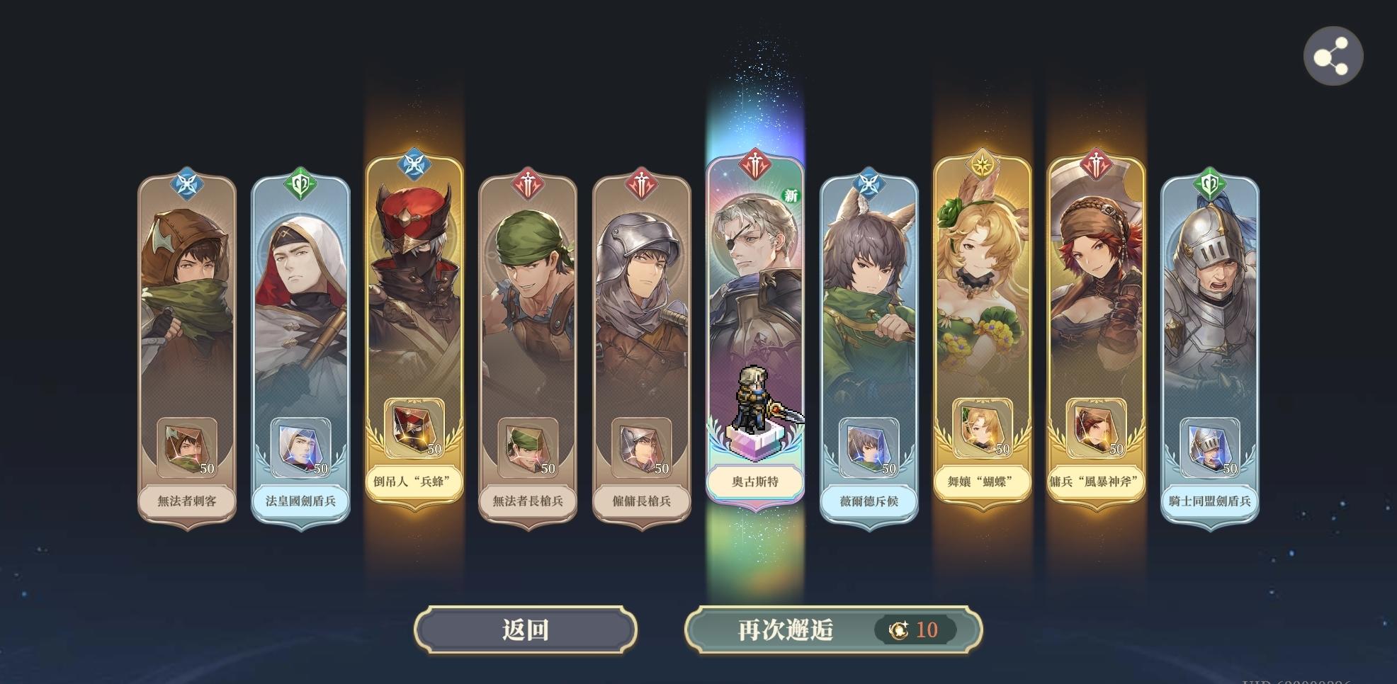 50抽以内搞定骑士团大神经!瞬间拉满技能和等级,晚上慢慢研究怎么点技能和配装~现在可以上骑士团满编。#铃兰之剑#铃兰之剑强度图