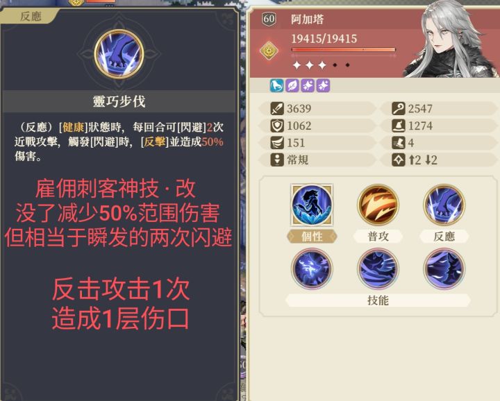 我整理了阿加塔的所有技能,附加详尽的分析并带来了大招的展示特效,现在全部带给大家台服已经可以让玩家自主操作银狼并且自由攻击,这也就意味着其技能机制已经成熟,大家可以期待一下上线了,我自己解析了一下技能,不正确的的大家可以指出来光属性的刺客,确定有露西亚阵营简单说一下优点○高机动性,本身4位移,加触发被动6位移,轻松绕后;○每回合自带两次闪避;○高真实伤害;○无间断范围高增伤、高减速