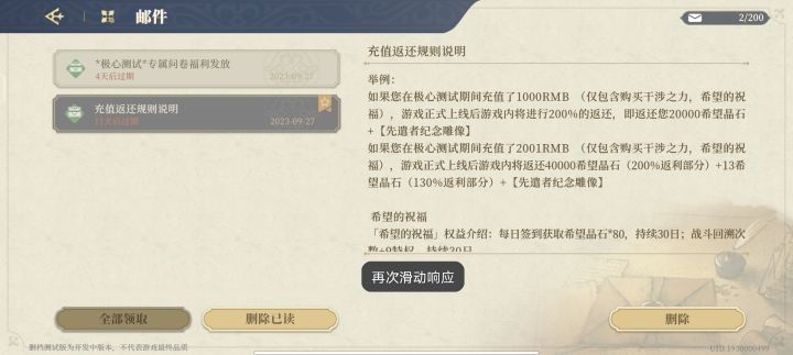 充值系统真是一坨,标个200%返利吓唬人,就是两倍,而且氪金氪的是干涉之力,礼包只能拿干涉之力买然后公测返还尼莫反晶石。什么答辩福利啊?我还以为你反两倍干涉之力呢。然后首充翻倍也是晶石翻倍,好好好这么玩是吧,测试充钱反而还要亏。隔壁马服瓦的返利都比你好啊,至少是真有的赚,它们还要倒吸血。2k之后直接电表倒转吸血#铃兰之剑极心测试