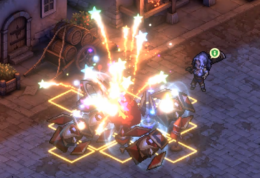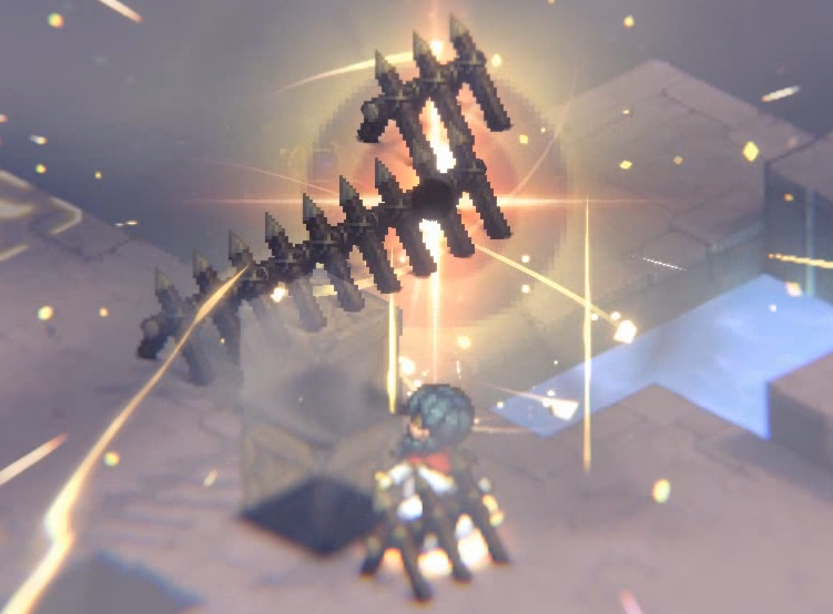 详细攻略: 这一关是防守解谜关。通关要求是阻止敌方单位到达指定地点 额外成就要求在一回合内消灭敌方7个或以上单位,且拉维耶没有受到伤害 我方拉维耶可以放置炮仗箱和火箭,普通攻击可以将道具推两格 注意敌方的陀螺灾厄在死亡时会爆炸,对周围一圈造成伤害,所以我们要尽量远离敌方陀螺,利用普攻将道具推向敌人 第三回合敌方单位较多,且比较集中,可以利用炮仗箱和火箭完成一回合7击杀的成就 另外需要注意敌方的使徒