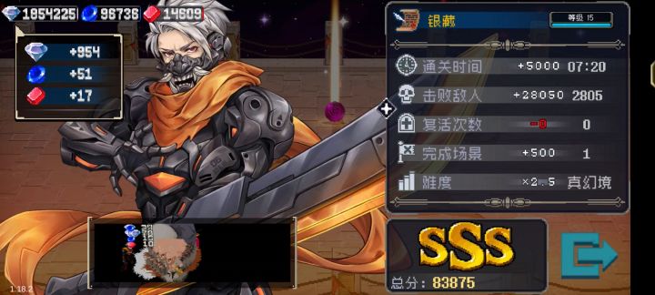 下载了瞎玩,还是银藏好使,正好一天一个难度,真幻境下面好像还能选混乱模式,没玩懂,看别人一刀三万多不知道怎么打出来的,就选这套了,不过手机容易发烫