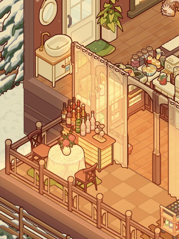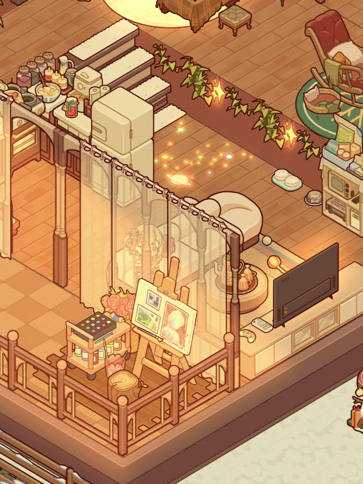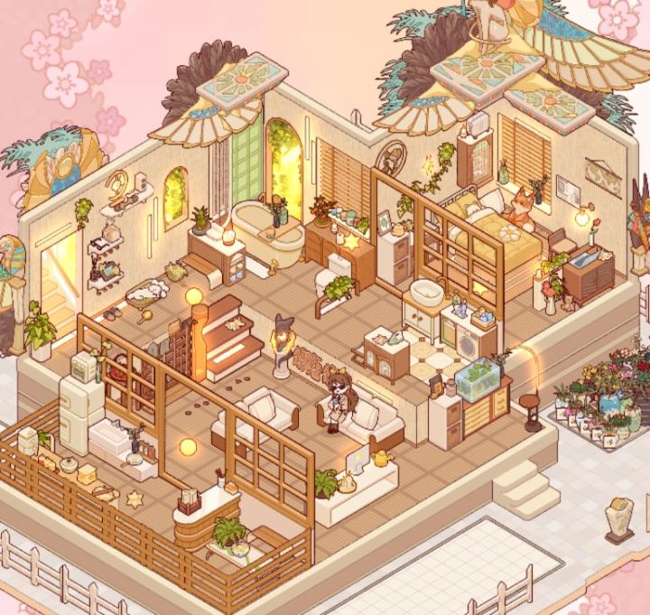#游戏日常 #我的休闲时光 #错层公寓 刁钻户型➕48低等级暖色布置没有高等级好看的家具也要认真摆截图调了色自我感觉蛮好看