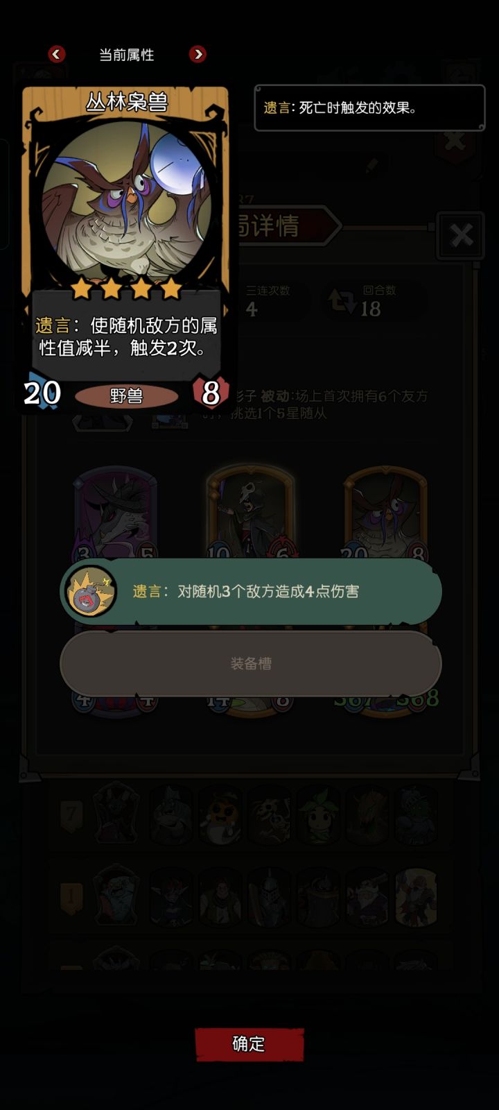 感觉很多新手看攻略,对应的怪名字看得很辛苦。我玩了99小时,万四分,摸索上来才刚刚入门勉强看懂。大数值身材的怪还没养起来过,但是具体思路知道了,小白可以入手试一波。看图一!当前最强t0套路先手遗言流的大致配置。【这个套路需要对局同时包含幽灵及龙】阵容组成:3+2+1【核心三人组+2个先手及遗言叠加怪+1攻击触发怪】或者3+1+1+1【核心三人组+1先手或遗言叠加怪+攻击触