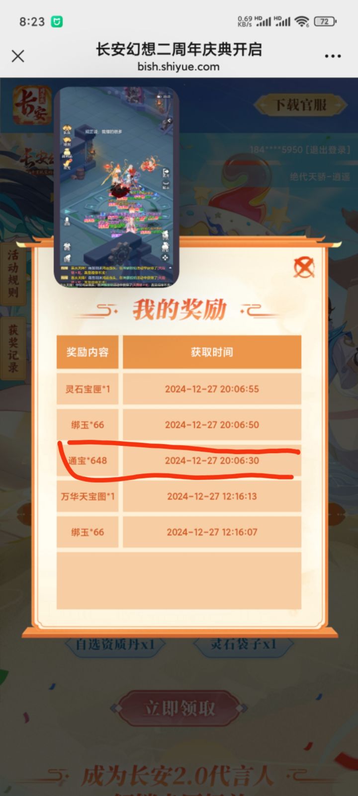 礼包码为:1227解锁二周年福利(请前往游戏设置中兑换)[表情_看我的]#长安幻想 #长安幻想二周年 #游戏安利 #游戏推荐 #游戏福利