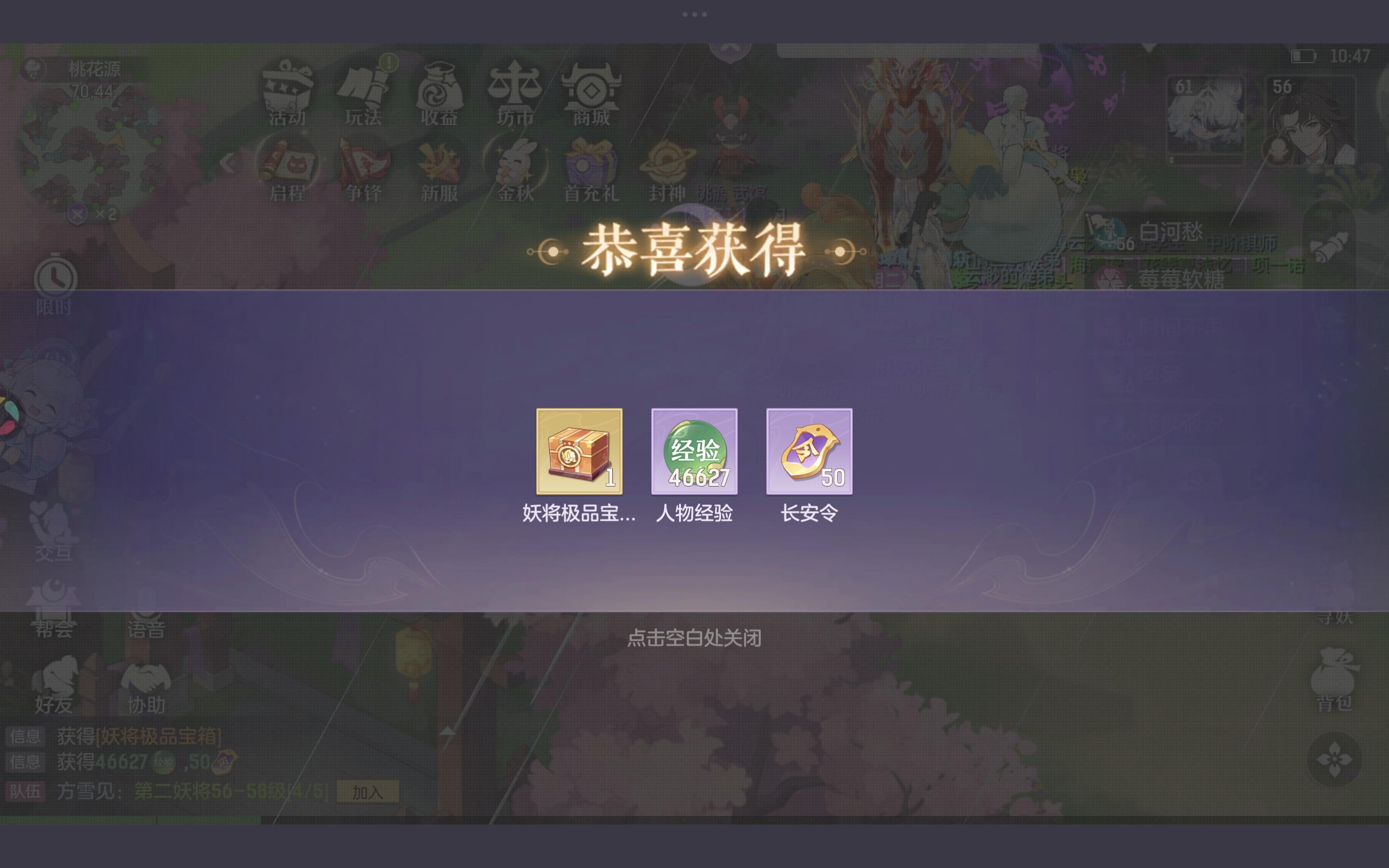 56级了,可以打妖将了,作为辅助,抱大腿直接乱过,青丘好啊,要一直玩青丘,塔也爬到我能到的最高层了,虽然我们区的爬塔排名结束了,继续加油。#长安幻想 #长安幻想假日速通 #长安幻想速通服