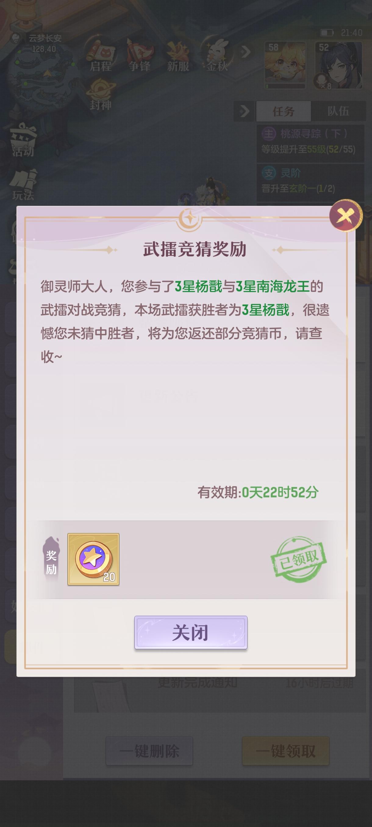 今天肝满了,但是两局竞猜全错了,竞猜币只剩12了 #长安幻想假日速通 #长安幻想速通服