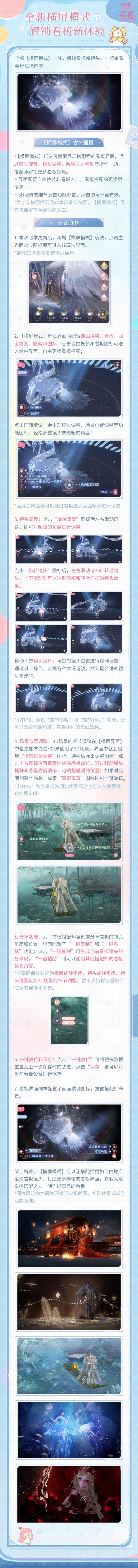 为了让搭配师更加自由地自定义看板镜头,打造更多样化的看板界面,4月24日更新后,全新【横屏模式】玩法上线,快发挥你的搭配之力,创作出独一无二的看板吧~#闪耀暖暖变形版本 #闪暖功能优化速报 ⭐【省流播报】①【横屏模式】玩法可横屏展示搭配师的看板界面,通过镜头旋转、镜头调整、暖暖左右移动等操作,助力搭配师解锁更多看板视角。②界面配置自由换装和看板入口,看板搭配的更换更便捷~*为了让搭配师沉