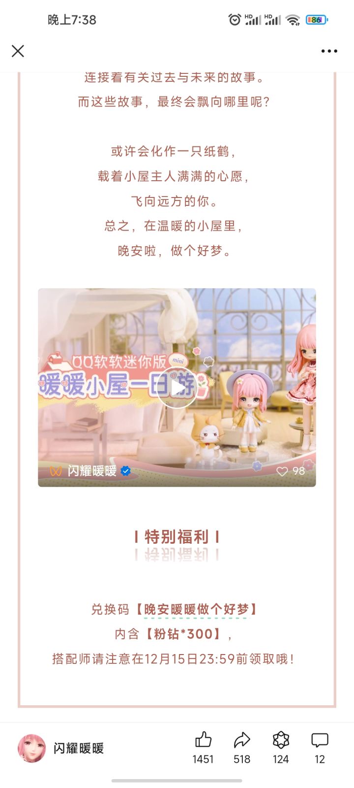 暖意折光1206晚安暖暖做个好梦#闪耀暖暖 #闪耀暖暖兑换码