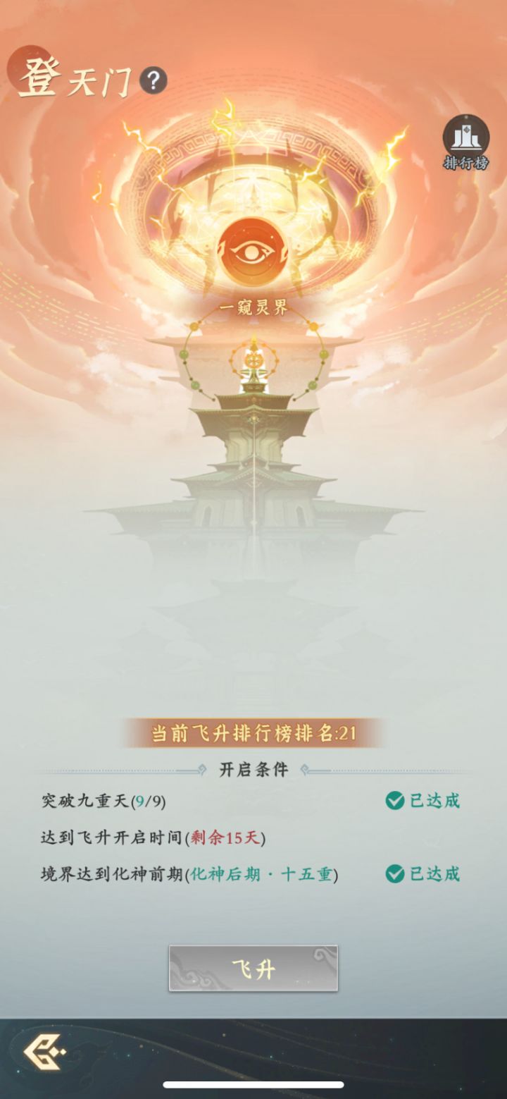 #问剑长生 目前修为也是成功溢出,坐等灵界飞升,可惜了没进前二十差了半小时,,还有14天的缓冲时间,这段时间具体买啥怎么买该屯啥我明早写个攻略发出来,大家可以看看,节省点玉保证修为,到返虚继续开荒,,