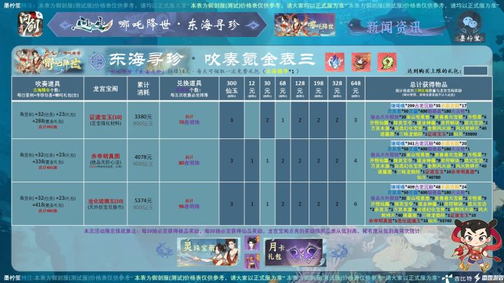 #问剑长生 #问剑长生活动攻略 #问剑长生史官 大家好,今日新活动的数据已经统计确认完毕喽。为大家带来问剑长生最新活动,预计正式服将在不久后上线的“哪吒降世”活动!以上是各节点价格表,所需的物资可以参考攻略图哦~注:本攻略所有价格均用最省钱方式(即免费抽奖次数拿完)计算。内测数据,仅供参考~