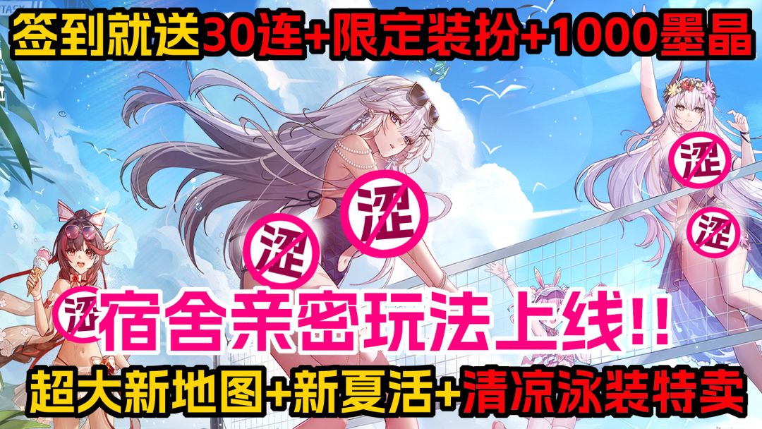 拒绝石头奶!泳装特卖!沙滩排球!宿舍上线!登录送30连1000墨晶