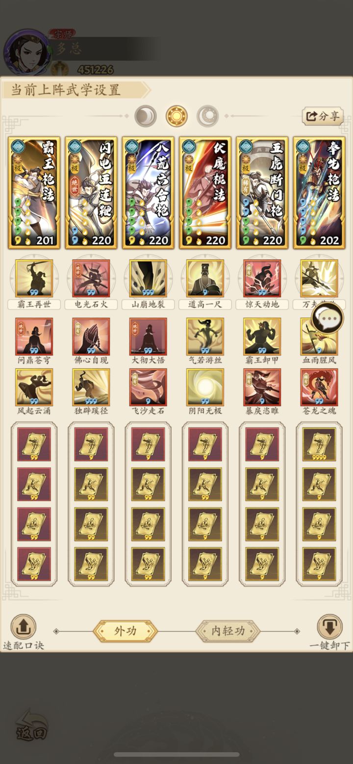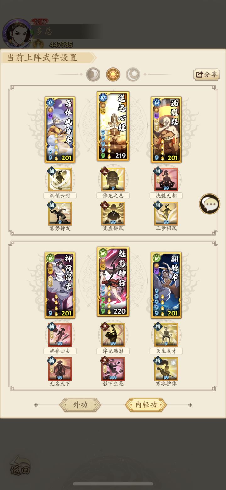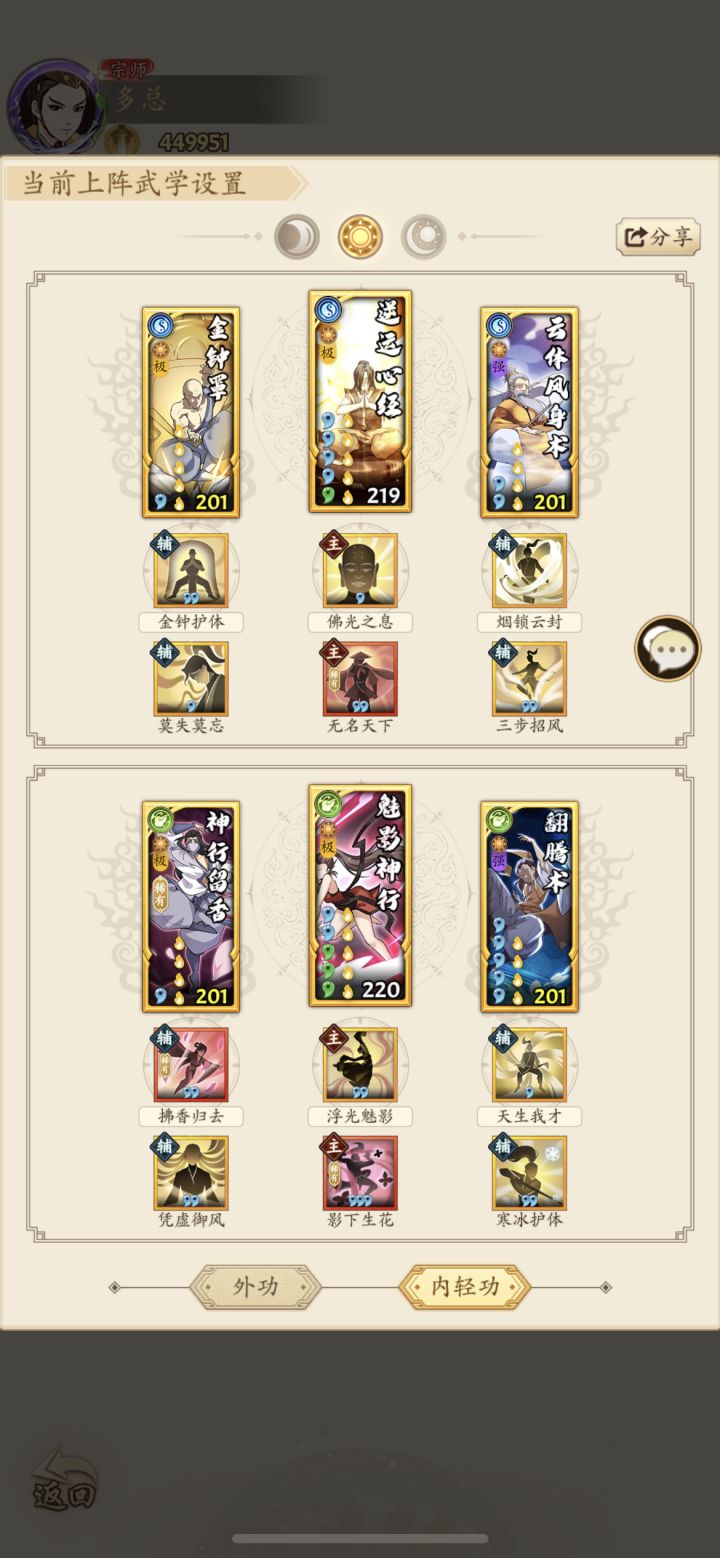 赶路途中忽见一大庙,上写拳打南山猛虎威四海 脚踢北海蛟龙震九州 横批拳圣韩天师 老师说遇到拳圣韩天师,死皮赖脸求指点。庙里打坐像菩萨那人一定就是天师了,快上前叩拜。 天师妹妹:天师不在,你叩错人了。我是他妹,不过你也不白叩,天师早就算定你会来,叫我指点你一二。 三花:这妹妹虽是女流,但感觉内力深厚如高山,她那如龙象巨力般的神掌打我身上我必死,须得用大麒麟心法迷之。 天师妹妹:你这心法还行,但发挥不