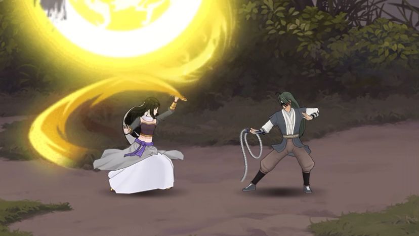 走到林子深处只见有一人月下独自耍刀,传闻林中有一高人,刀法极高境界,刀并不出鞘便能散发出逼人的杀气,若能得他指点,功夫定能精进。 三花:敢问大侠为何独自在这耍刀? 秋秋:江湖现各流派增强,唯有阳刀停滞不前,我每天在这苦苦思索,如何才能让阳刀从回巅峰。 三花:阳刀自先辈们创立以来,经历无数风雨,却依然屹立不倒,江湖上的阳刀都是有信念的高手,以后一统江湖的肯定是阳刀,还请大侠能指点我一二。 秋秋:自从