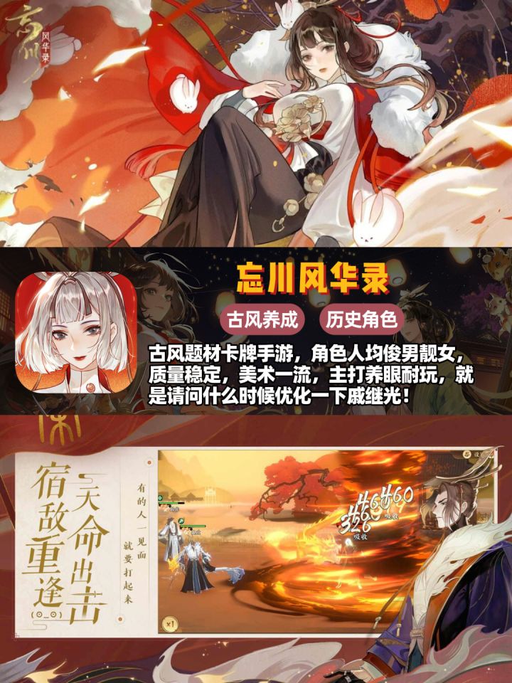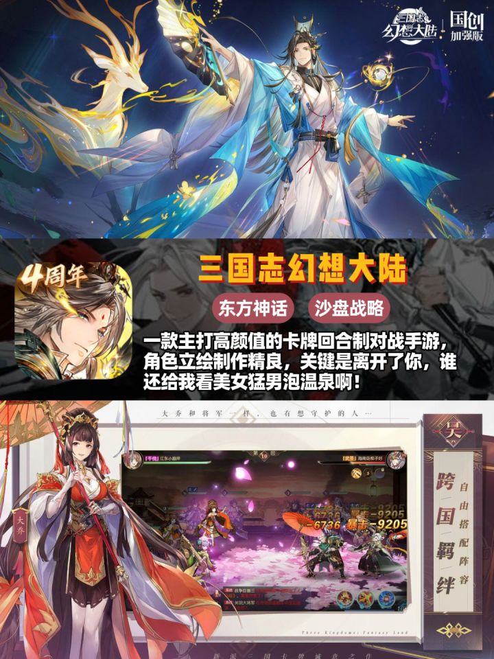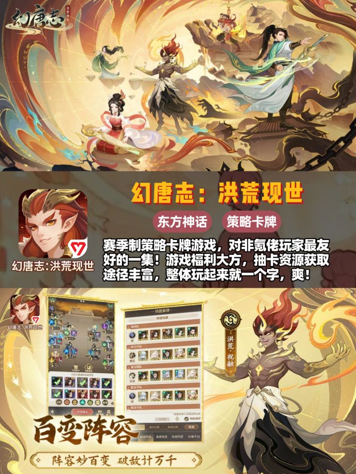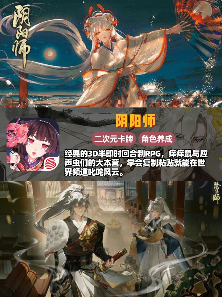 🎮《幻唐志:洪荒现世》🎉赛季制策略卡牌游戏🎲,对非氪佬玩家最友好的一集!游戏福利大方💰,抽卡资源获取途径丰富🔄,整体玩起来就一个字,爽!👍😄🎮《阴阳师》👻经典的3D半即时回合制RPG🗡️,痒痒鼠与应声虫们的大本营🏰,学会复制粘贴就能在世界频道叱咤风云。😎🎮《忘川风华录》🏮古风🎨题材卡牌手游,角色人均俊男靓女,质量稳定,美术一流🖼️,主打养眼耐玩,就是请问什么时候优化一下戚继光!🙏🎮《三