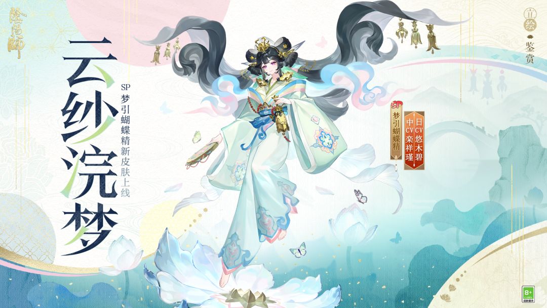 铃铎清响,少女摇起手中铃鼓,踏琉璃青莲舞动,眼中映出万千梦境交织的斑斓光影…… 梦引蝴蝶精新皮肤「云纱浣梦」将于2月1日0:00,可通过花合战·如月获取,参与活动达到指定条件,即可获得限定头像框「蝶梦浮光」,购买墨染花札·典藏版,还可获得「签到主题·云纱浣梦」、限定动态头像框「蝶梦浮光·昙梦」。在花合战·如月中等级达到20级可解锁专属插画「琉璃梦影」,购买墨染花札并在花合战·如月中等级达到10级可