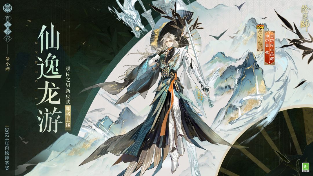 惊雷与龙吟响彻山林,忽见仙府石门洞开,剑气横空青龙游走,原是仙人踏空而来。 △「须佐之男·仙逸龙游」来自于2024年 百绘罗衣·神笔奖获奖作品,由百绘罗衣·式神皮肤设计大赛画师 小哔 创作而成。衷心感谢所有才华横溢热心参与的大人们! △此次上线的皮肤,将于1月7日维护后-1月20日23:59限时上架皮肤商店,售价68魂玉,大人解锁该皮肤后可获得专属动态头像框、全新专属技能特效与点触动作。 更多相关