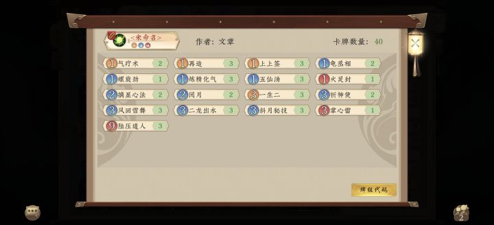 我不我不是第一个想到这样子的,我也是抄的,然后改的一点。第一个想到这样玩的,我觉得也是个天才,思路一下子打开了。反正我是没想到还能这样搭配祈神使上路压道人,然后技能再配合汤,以达到清场效果,闭月二费作为防牌也能保祈神,四费截心就太拖节奏了,当然当然我这副牌可能还有不足之处。还望大佬有所指点。谢谢谢谢谢谢#游戏杂谈 #五行师卡牌diy #五行师 #五行师卡牌 #最五行灵域什么时候返厂韩