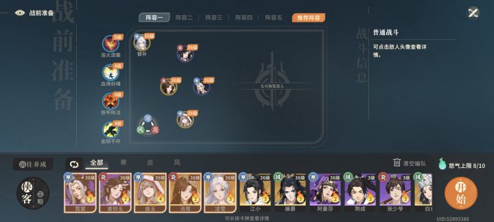 一、配置36级1.凌雪(5)+霓裳(5)+小铃铛(5)+池鹭(1)+曲玉(1)2.上阵和策卡搭配(在图5)3.心法和经脉搭配凌雪:刺杀(心法),经脉点+伤害小铃铛:灵猿(心法),经脉点二连击霓裳:真意(心法),经脉点二连击曲玉:峨眉/素心(心法),经脉点+内防池鹭:峨眉(心法),略4.装备:略二、技能与解法1.由于等级低,图四的boss很容易一个波就全死了,因此打章天奕需要